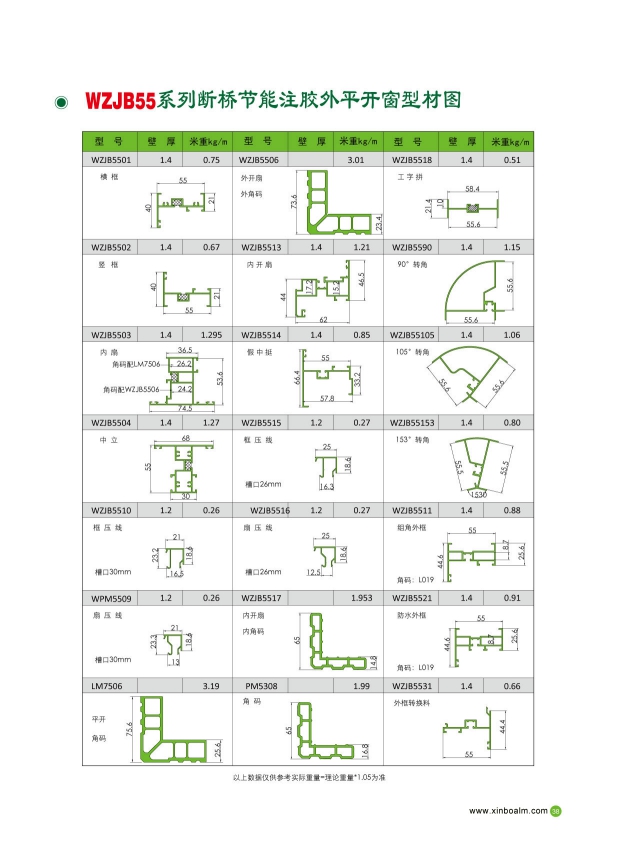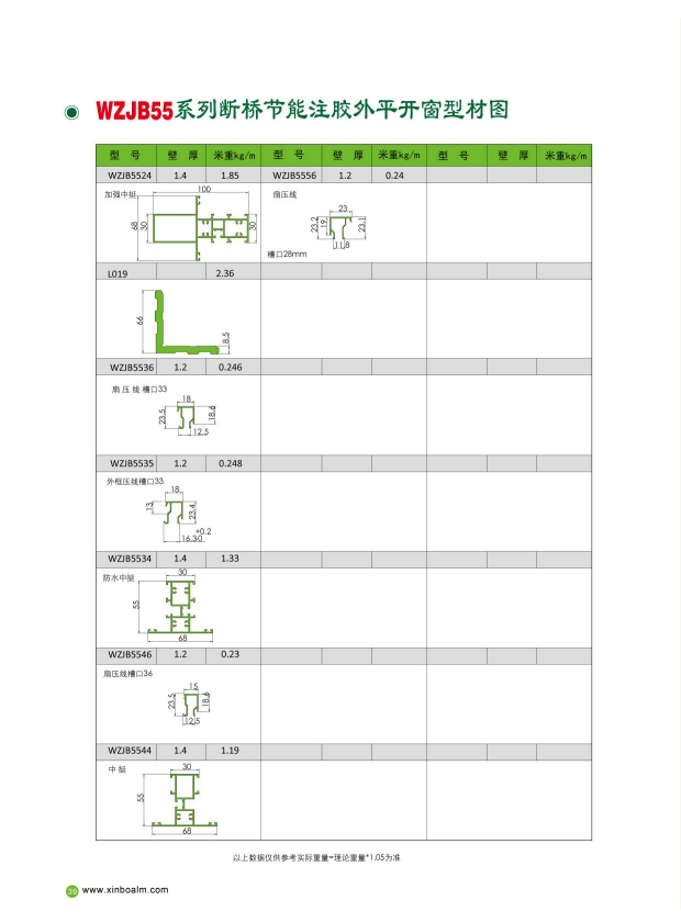 当前位置:首页>>产品中心>>建筑铝型材>>断桥隔热门窗型材>>WZJB55系列注胶隔热外平开窗